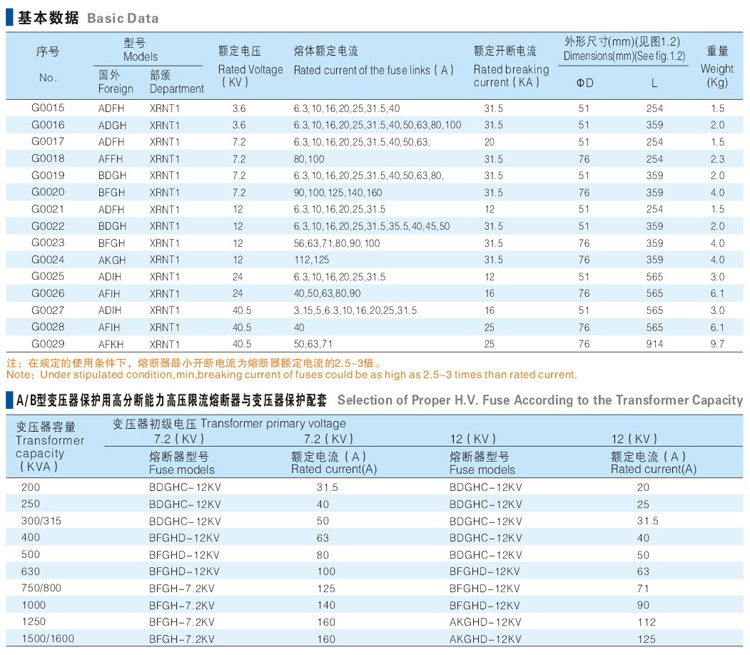 Indoor H.V.Current-limiting fuse RW