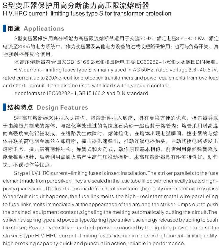Your location: Home > Product > High Voltage Fuse > Hight voltage fuse S
